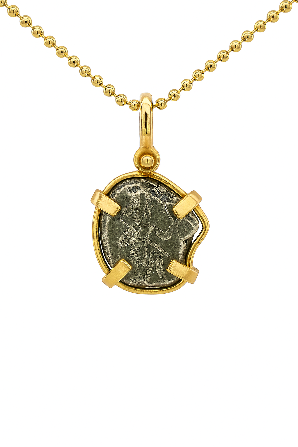 - Obverse: King in a running, kneeling stance holding spear and bow