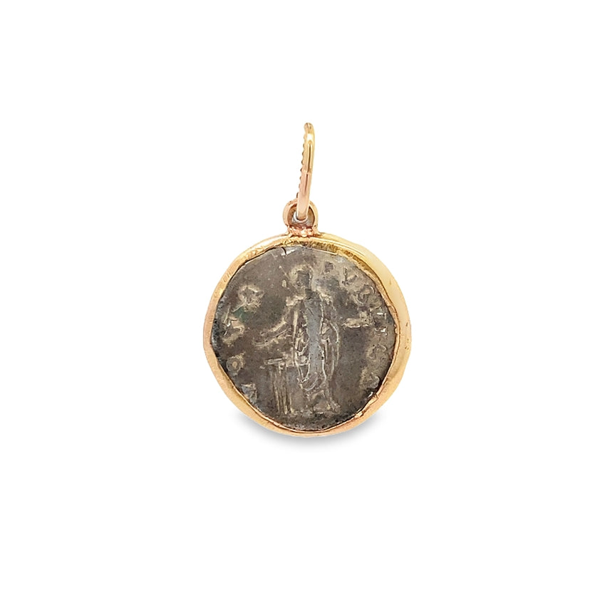 - Reverse: Pietas standing facing left beside an altar with both hands raised; around, PIETAS AVG