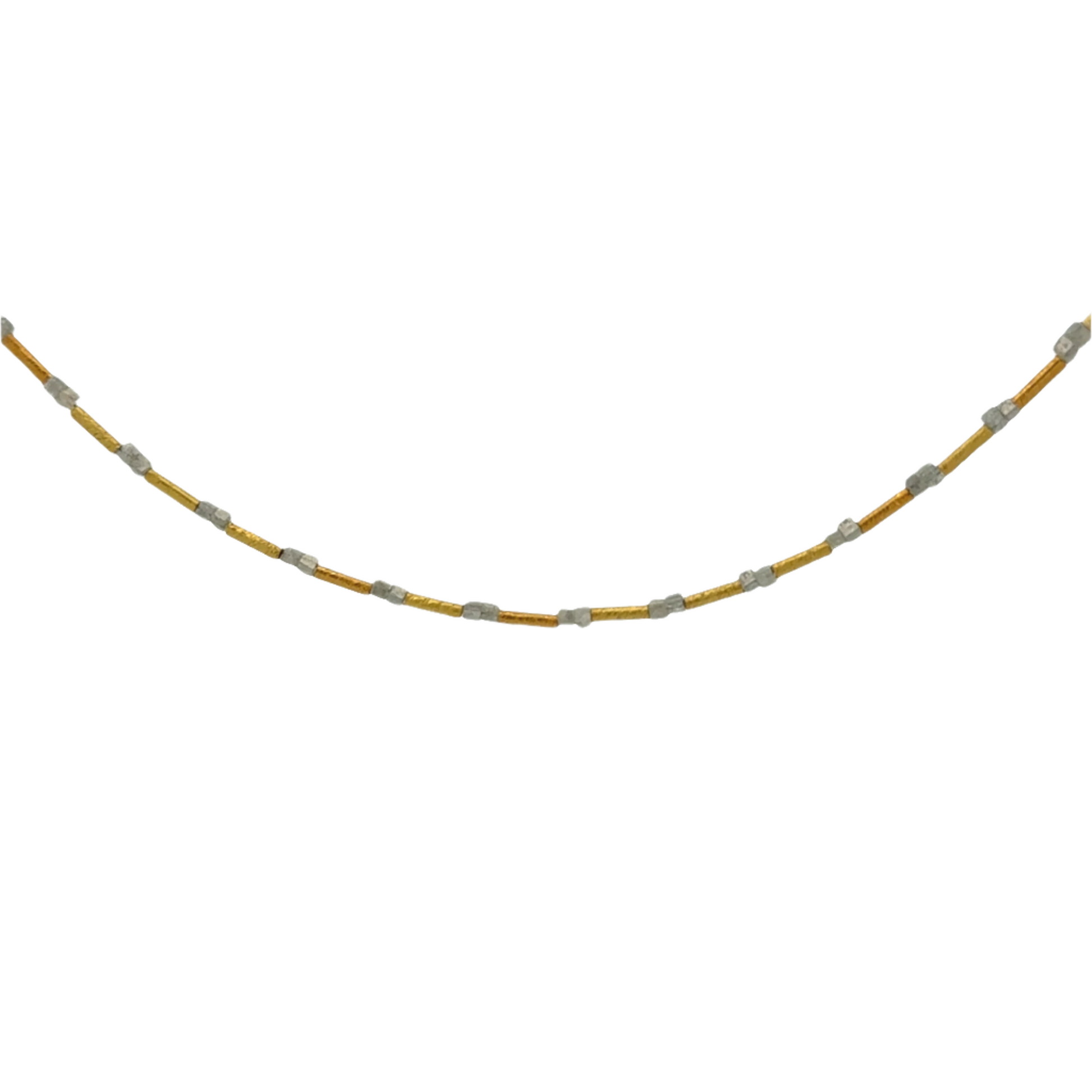 22K Yellow gold beads, grey diamonds.